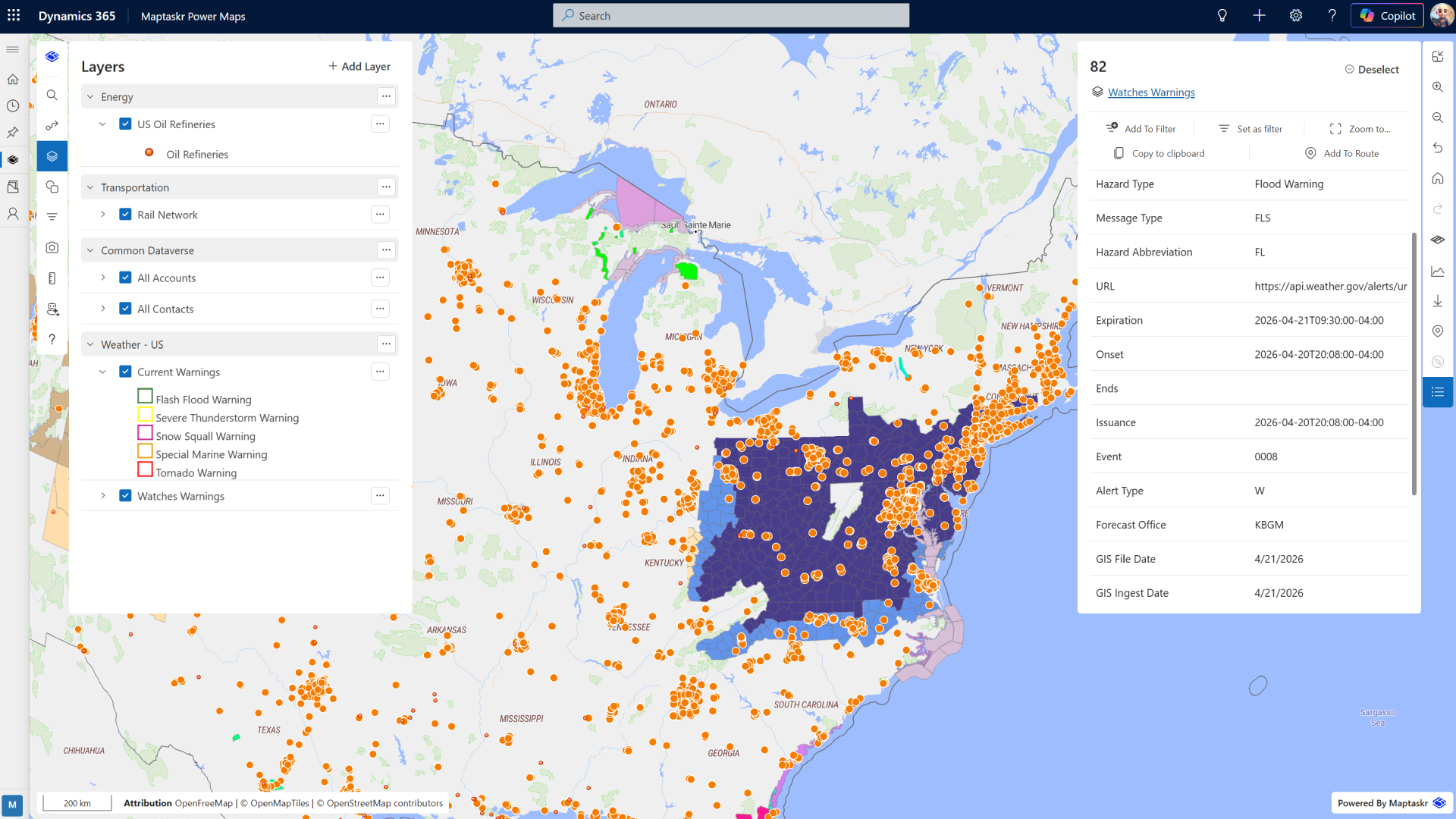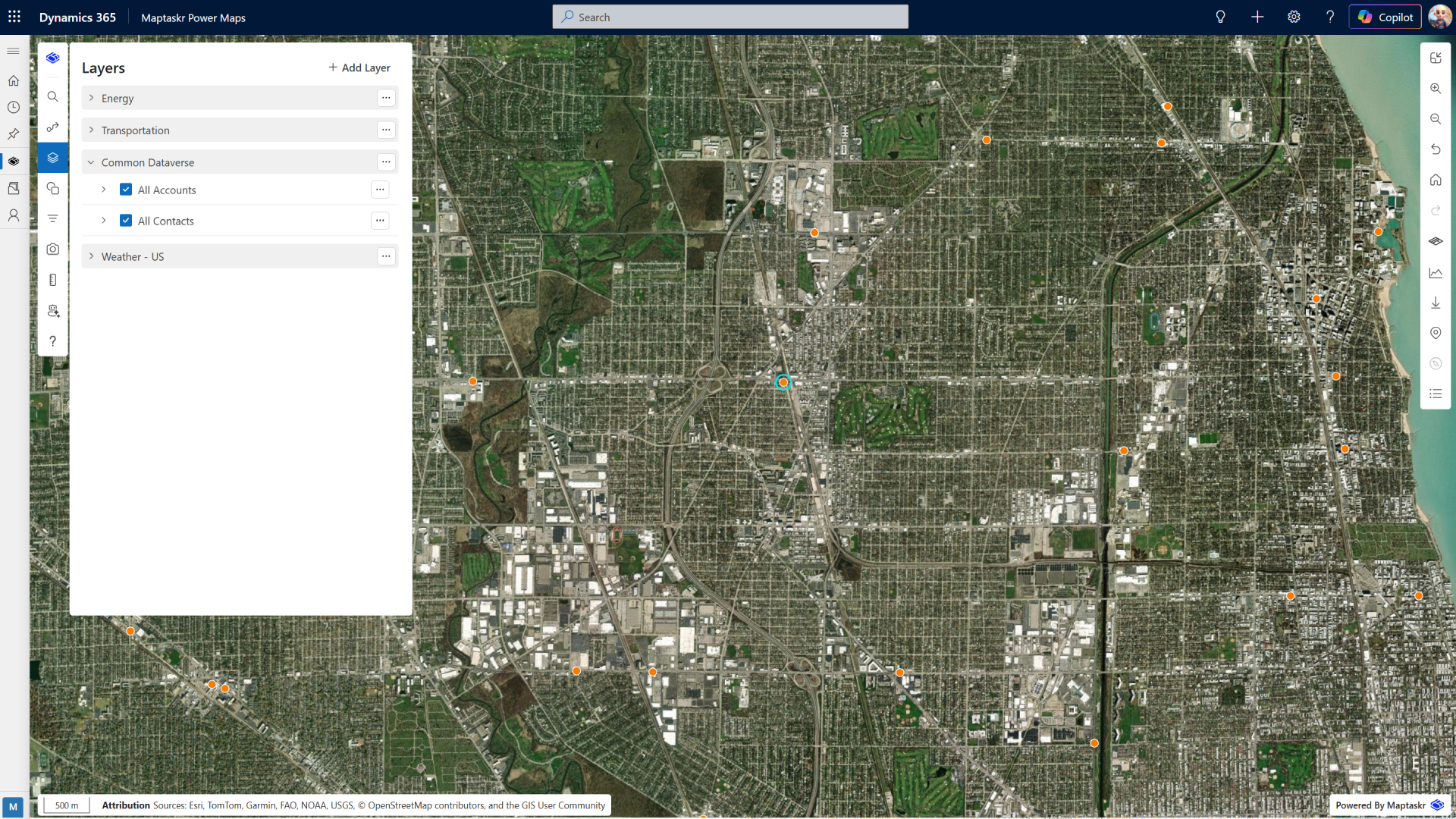 Combine business data from Dataverse with external geospatial sources to create a single, unified operational map.