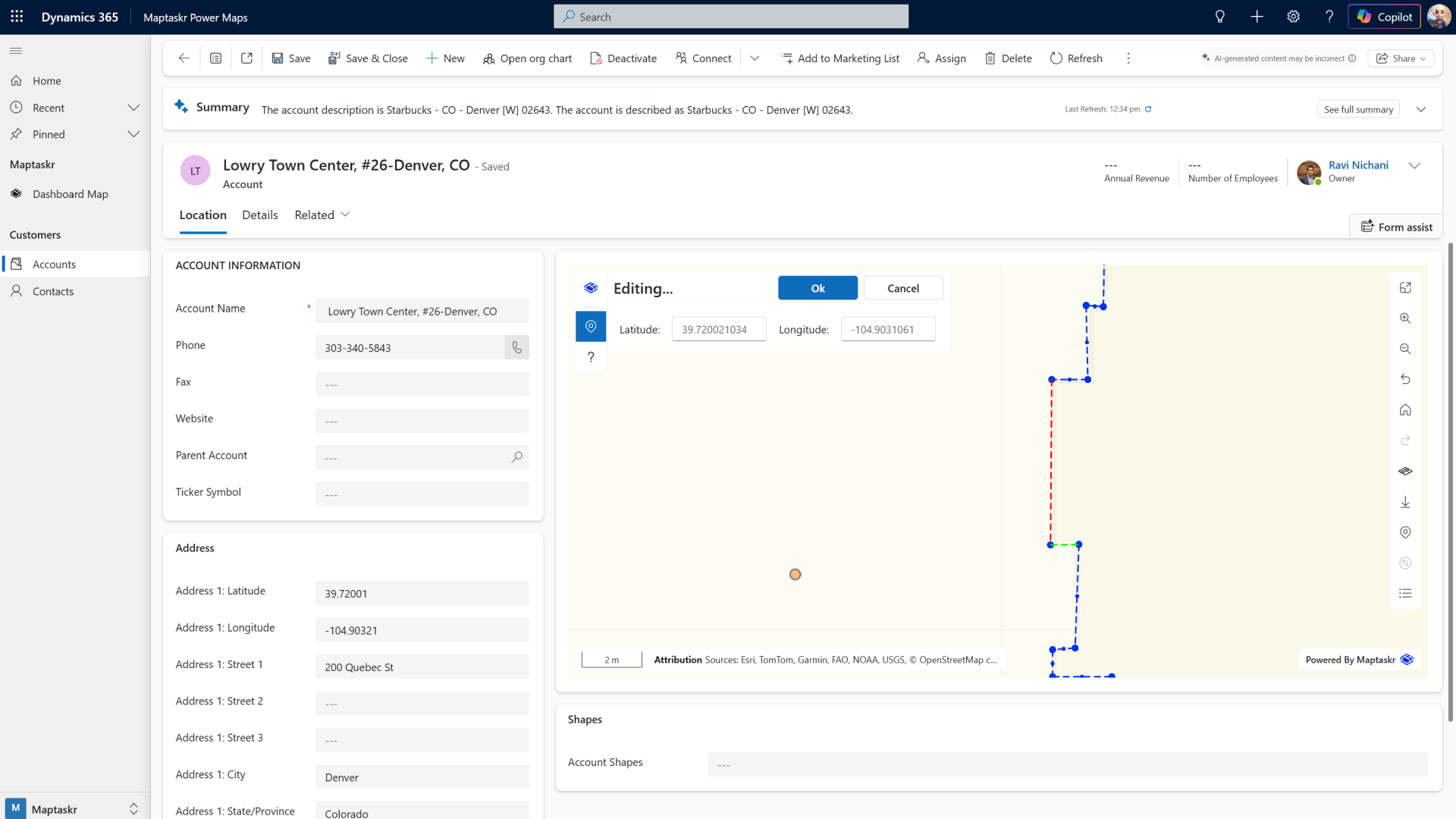 Authoring isn't just about creation - Maptaskr provides a complete editing experience so shapes can be adjusted as the business changes. Users can move, scale, and rotate existing geometry, fine-tune polygons and lines at the vertex level, or enter exact latitude/longitude values through the coordinate panel.